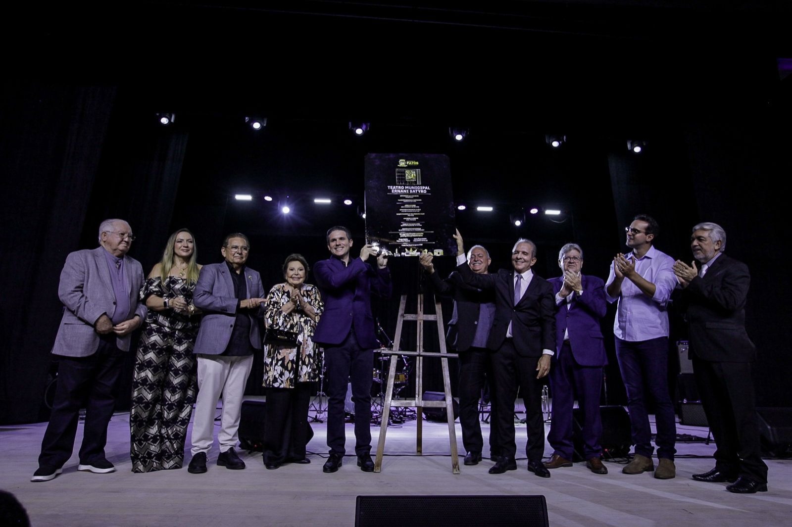 À noite, a agenda de inaugurações seguiu com a entrega do Teatro Municipal Ministro Ernani Sátyro, um equipamento voltado à promoção da cultura, das artes e à valorização da identidade regional. Durante a cerimônia, Hugo Motta ressaltou o papel da cultura como instrumento de transformação social e destacou a relevância da obra para o Sertão paraibano.